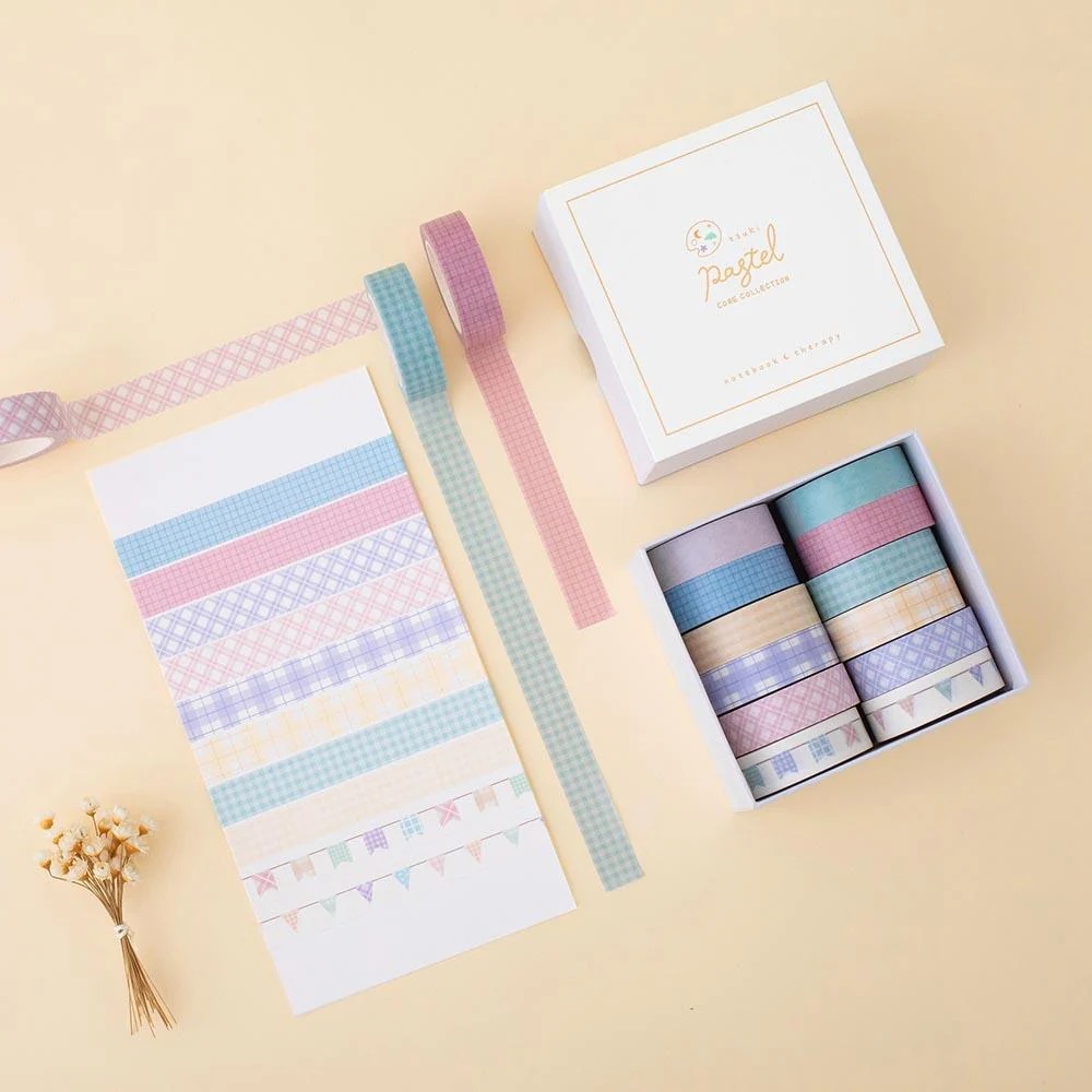 The newest addition to our Tsuki Collection, each bullet journal washi tape is perfect for bringing ideas to life on your bullet journal pages! With 3 cute colour schemes: Pastel, Cool Neutral + Warm Neutral, choose from gingham prints to grid washi tape to take you through all seasons of the year! Add vintage aesthetic touches to spreads, calendars + gifts, or create your own washi tape art with ease.